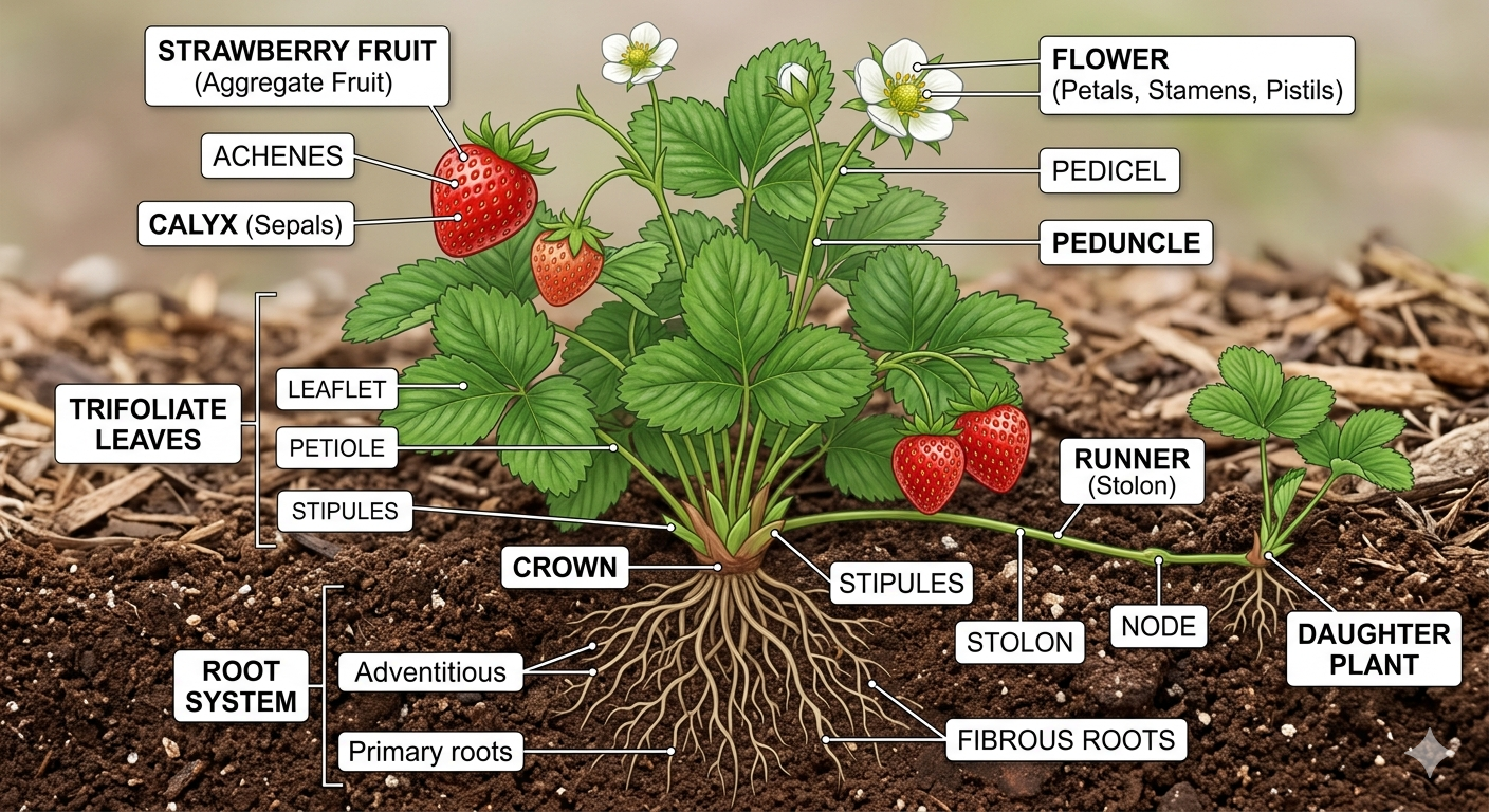 Very little can compare to the flavor and juiciness of a fresh strawberry. Despite being a ridiculously hardy plant, strawberries develop a reputation for being difficult due to grow due to one thing: how finicky they can be when planting. I have struggled many times in the past with planting strawberries, so I know how frustrating it can be to watch your plants shrivel and turn black. After hundreds of plants grown, I feel more confident with my ability to transplant strawberries and hope this guide will make you more successful as well. All you need to be successful with planting strawberries is some basic anatomy/physiology of the strawberry.